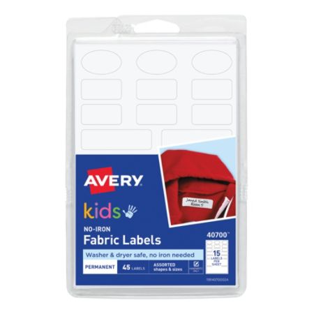 Avery No-Iron Clothing Labels White Assorted Shapes - 45 labels (Pack of 3) - Walmart.com