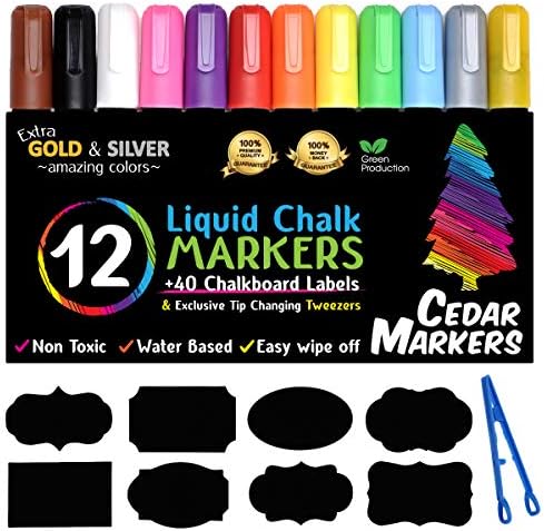 Cedar Markers Liquid Chalk Markers - 18 Pack Chalkboard Markers for Chalkboards. Reversible ...